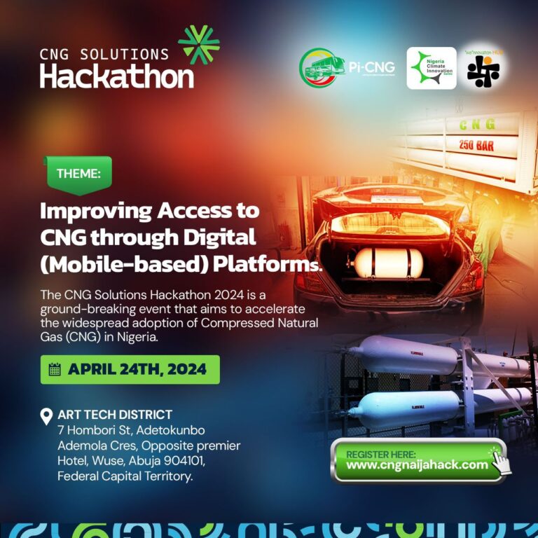 The Presidential Compressed Natural Gas Initiative- PiCNG, a leading advocate for sustainable energy solutions, is thrilled to announce the launch of CNG Solutions Hackathon 2024. This groundbreaking event is set to take place on the 24th of April, 2024 at the Art Tech District in Abuja. The Hackathon is aimed to accelerate the widespread adoption of Compressed Natural Gas (CNG) in Nigeria.
