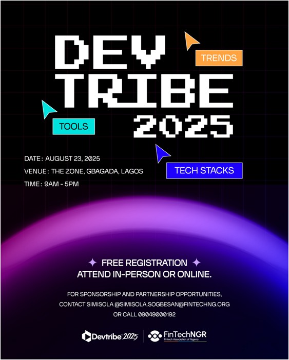 The Fintech Association of Nigeria (FintechNGR) has announced its flagship conference for software developers, DevTribe 2025. The event is scheduled for Saturday, August 23, 2025, at The Zone in Gbagada, Lagos.