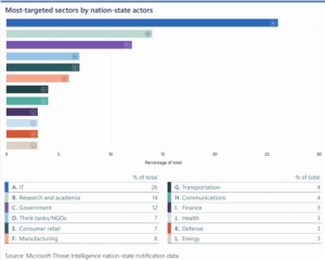 While cybercriminals are the biggest cyber threat by volume, nation-state actors still target key industries and regions, expanding their focus on espionage, and in some cases on financial gain. Geopolitical objectives continue to drive a surge in state-sponsored cyber activity, with a notable expansion in targeting communications, research and academia.