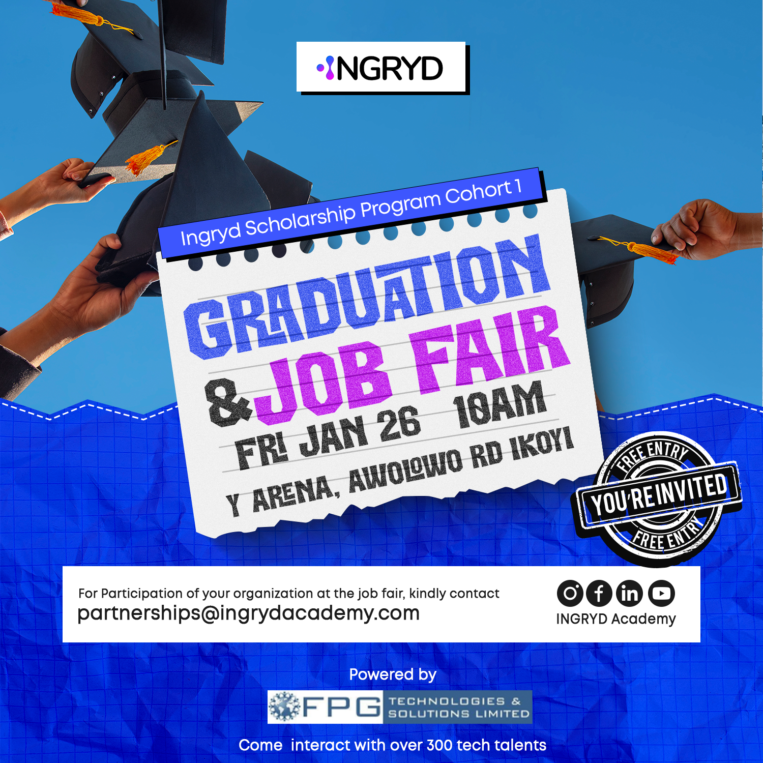 Ingryd Academy is excited to announce the Graduation and Job Fair celebrating the inaugural class of the Ingryd Scholarship Program. On January 26, 2024, at Y Arena, Ikoyi-Lagos, this event will recognize the graduates’ achievements and serve as a dynamic platform for them to connect with potential employers.