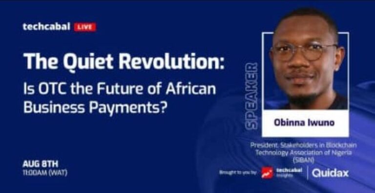 Obinna Iwuno, President of the Stakeholders in Blockchain Technology Association of Nigeria (SiBAN), posited this during a webinar organized by Techcabal in collaboration with Quidax, with the theme: ‘The Quiet Revolution: Is OTC the Future of African Business Payments?’